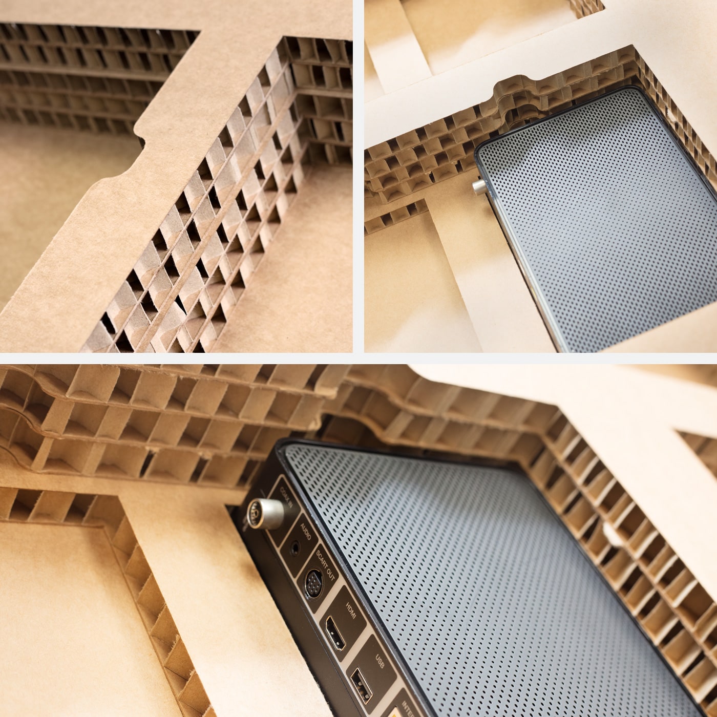 Nuestro empaque con estructura en panal (honeycomb) es completamente personalizable, permitiendo ajustar el diámetro de los hexágonos para optimizar la resistencia a la compresión. Su versatilidad permite moldearlo a diversas formas, ofreciendo protección superior durante el manejo y transporte.